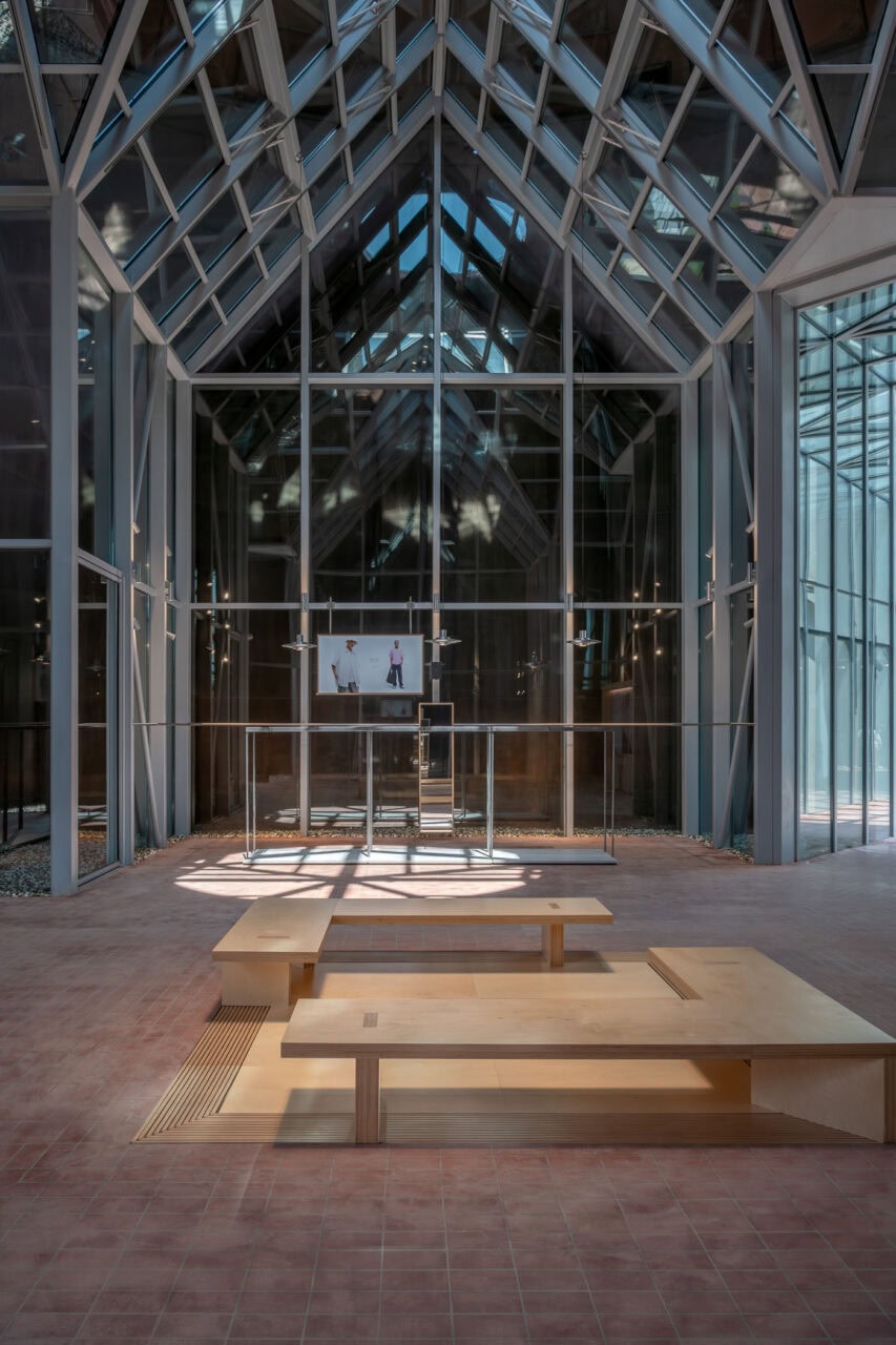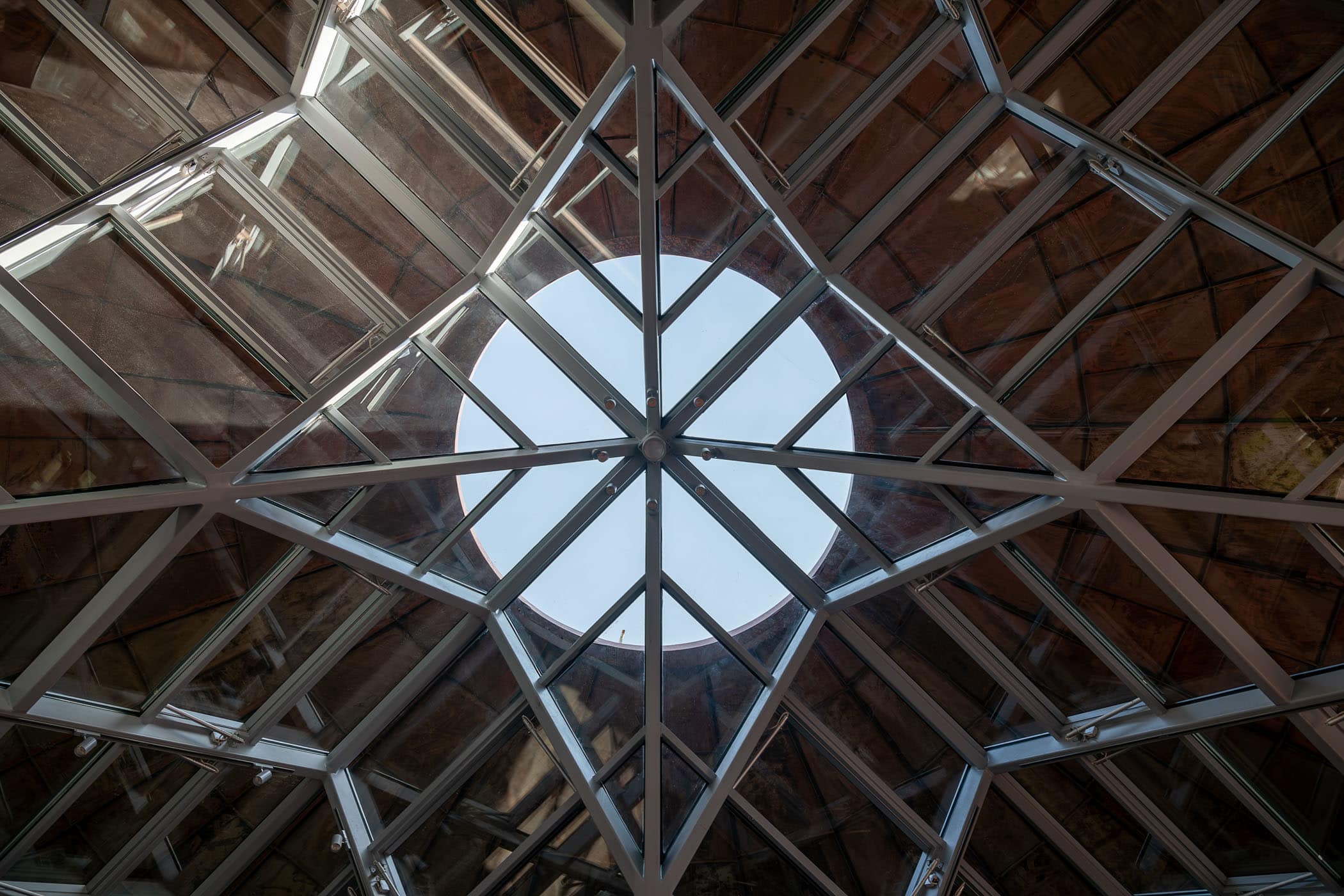 The opening on the top of the silos creates natural air convection between the silos and the glass house, avoiding internal overheating problems that occur in the summer. Strategically integrating the heating and cooling infrastructure into the floors allows us to keep these industrial "churches" free from visible technology.