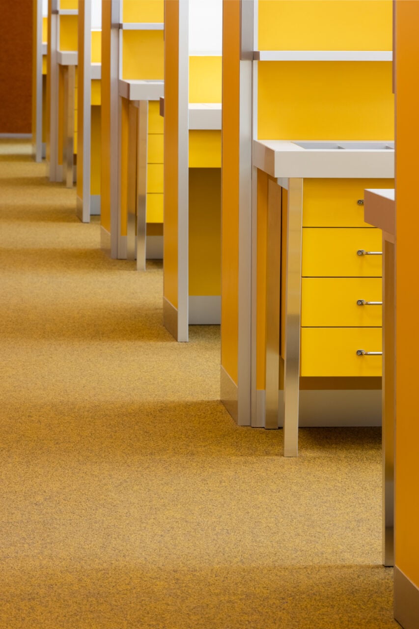 Working with bright color tones, soft carpets, and different textures creates a mood of future positivism.